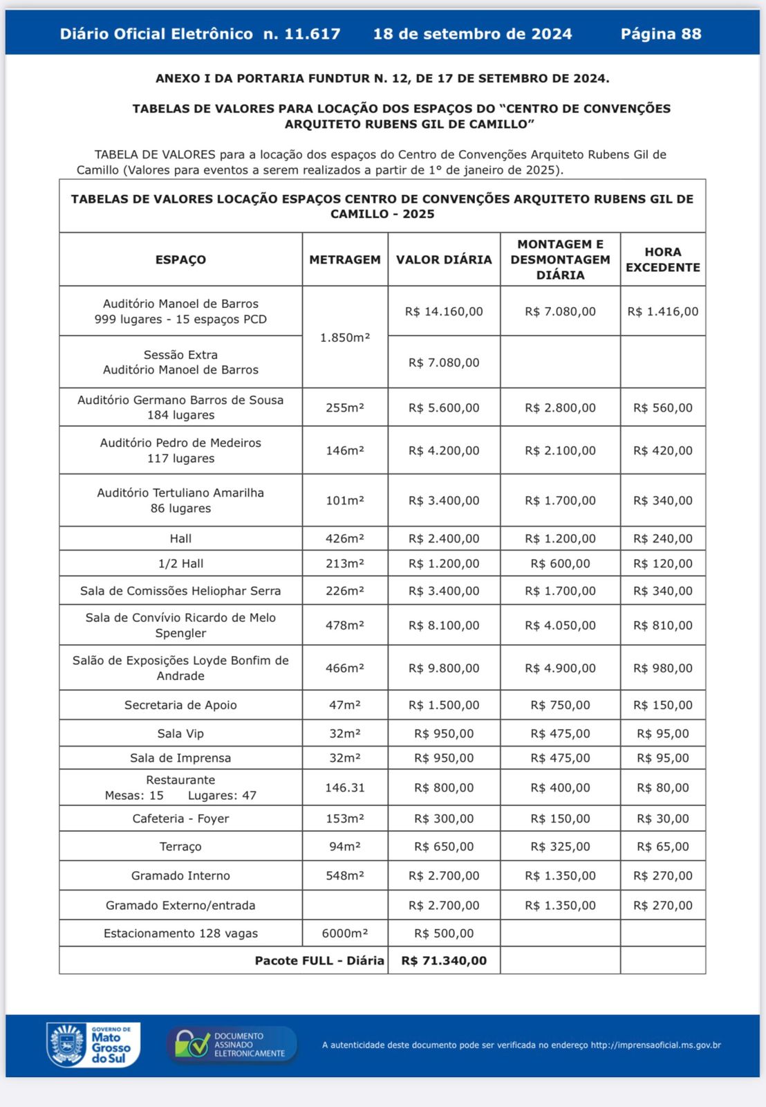 Tabela de Valores